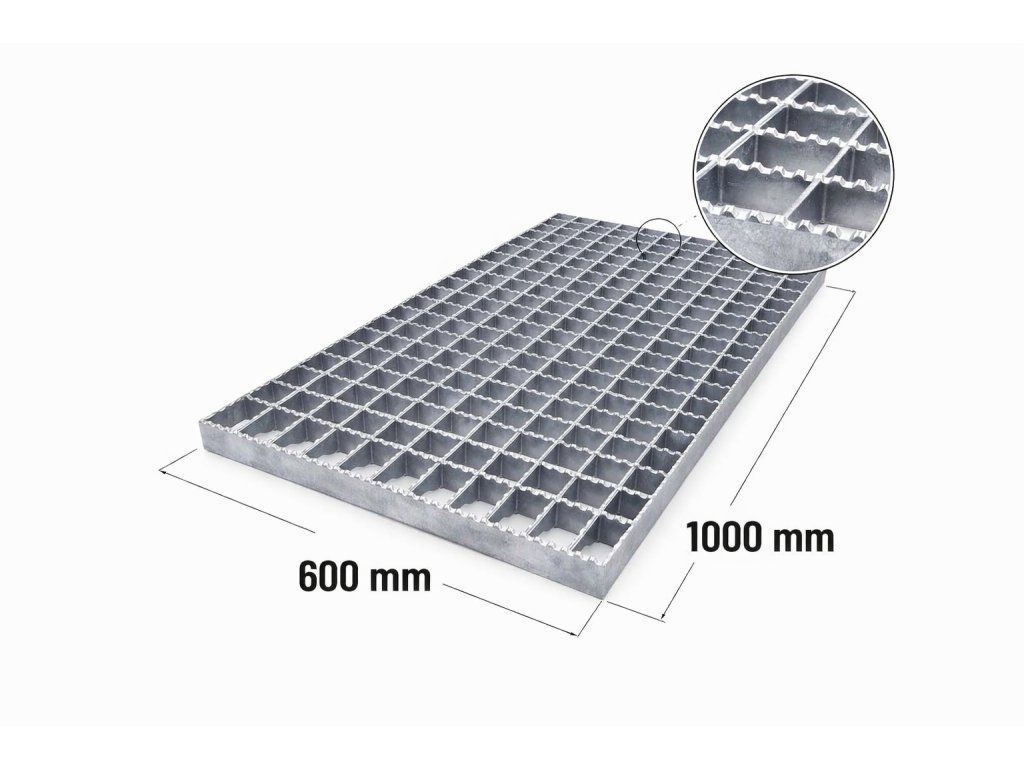 Ocelový protiskluzový zinkovaný rošt XSP 30/2 - 34 x 38 mm - 600 x 1000 mm