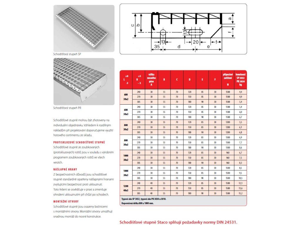 | Rozměr schodu | 800 x 240 mm |